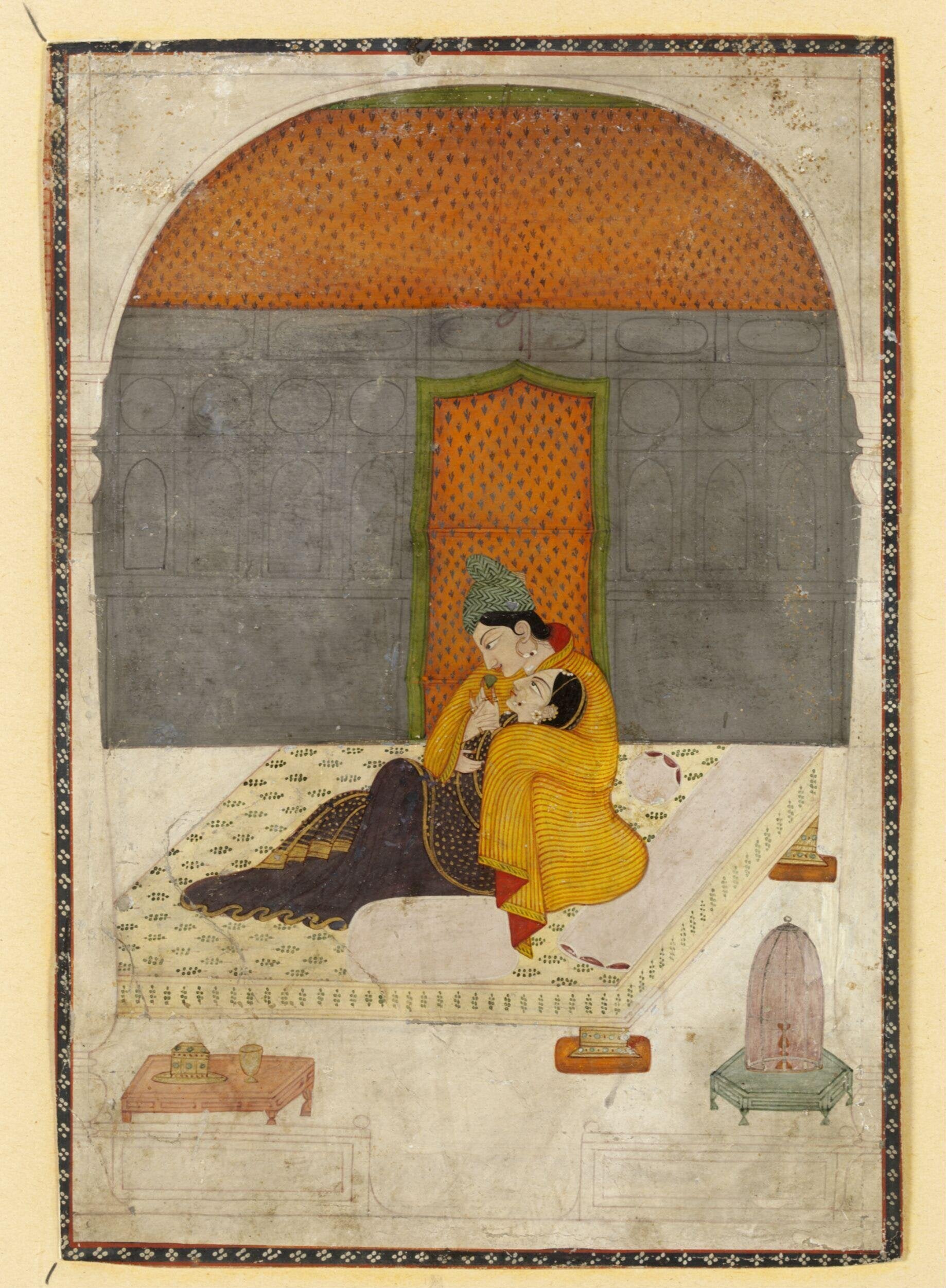 The queen offering paan references a long-standing romantic motif — in miniature paintings, paan is a gesture of enjoyment and affection.